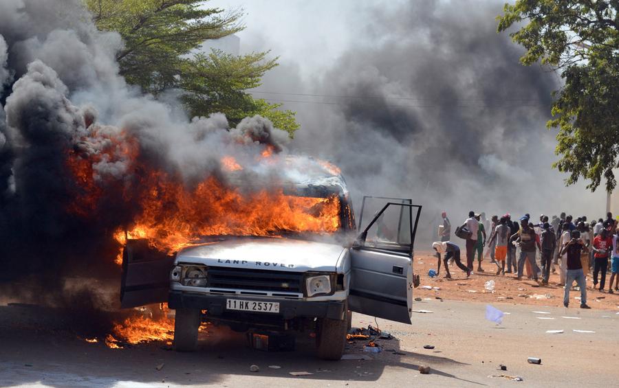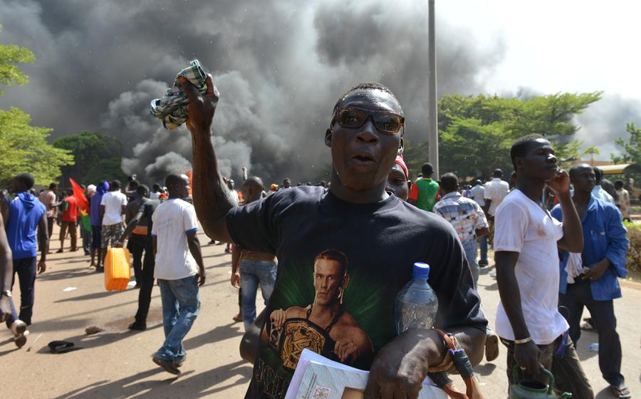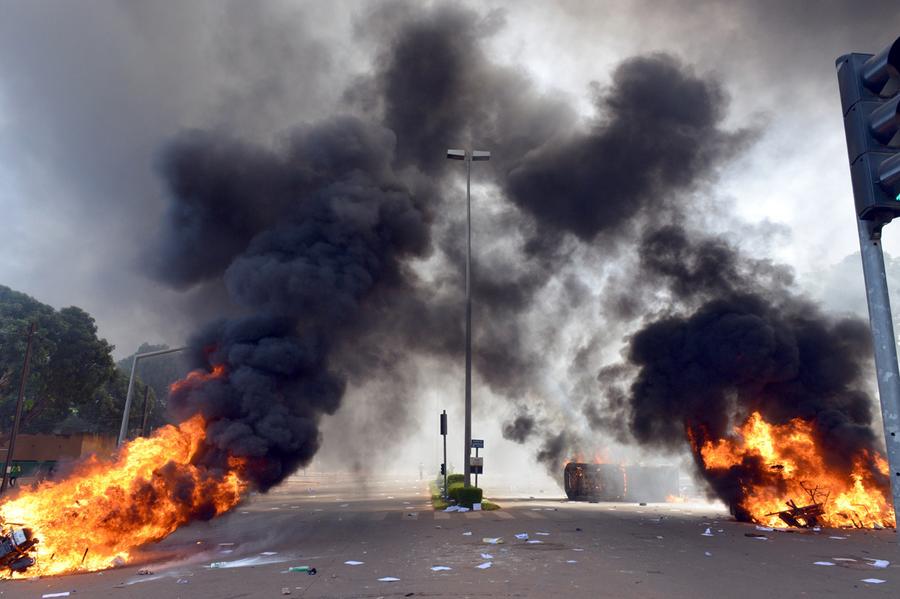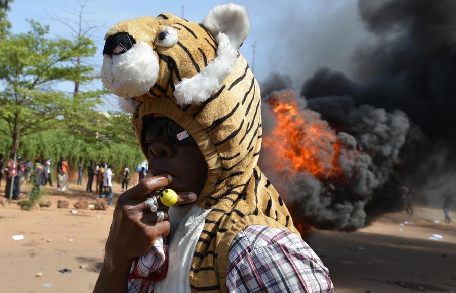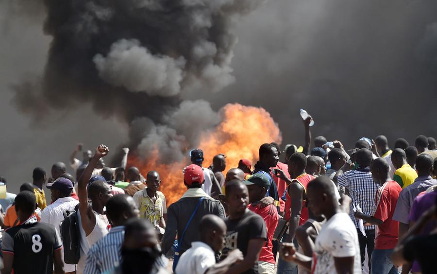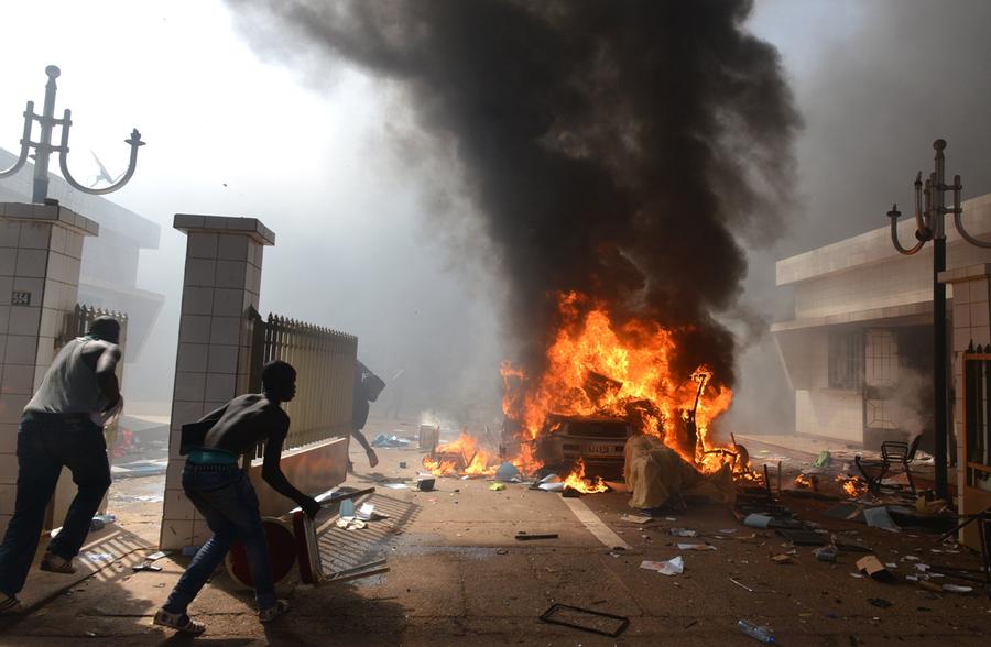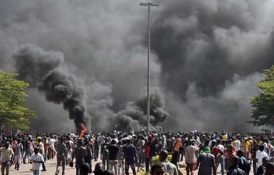 Read morePeople stand in front of a fire in front of Burkina Faso's Parliament on October 30, 2014 in Ouagadougou. About 1,500 people managed to break through a security cordon, ransacking parliament, according to AFP correspondents. Protesters broke into offices, setting fire to documents and stealing computer equipment, and setting fire to cars outside. #