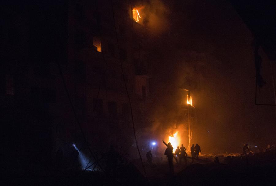Read moreSyrians try to rescue wounded people from a burning building following a reported airstrike by government forces on the Kalasa neighborhood of the northern Syrian city of Aleppo on November 12, 2014. #