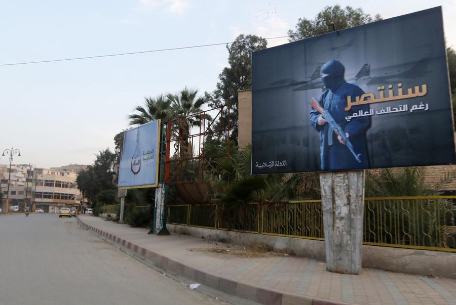 Read moreISIS billboards along a street in Raqqa, eastern Syria, which is controlled by the Islamic State, on October 29, 2014. The billboard (right) reads: "We will win despite the global coalition". #