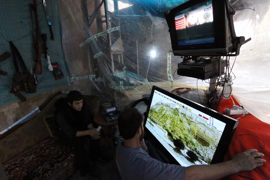 Read moreRebel fighters monitor control screens for any movement of regime forces around the UNESCO-listed citadel where they hold a position on November 3, 2014 in the northern Syrian city of Aleppo. The 5,000-year-old citadel, which towers 100 meters above the rest of the city, is now under the control of rebel fighters. #