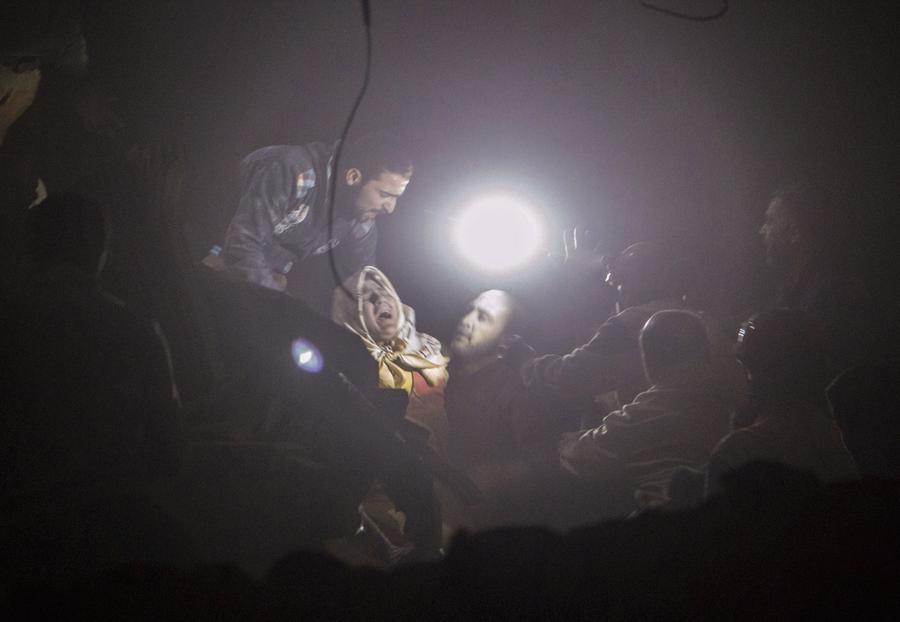 Read moreA woman screams as she is rescued from a burning building following a reported airstrike by government forces on the Kalasa neighborhood of the northern Syrian city of Aleppo on November 12, 2014. #
