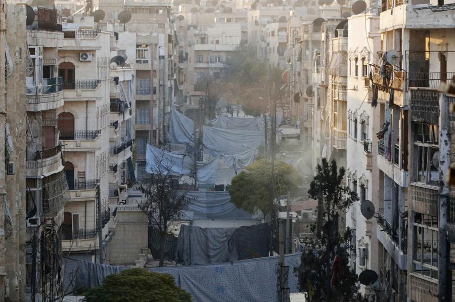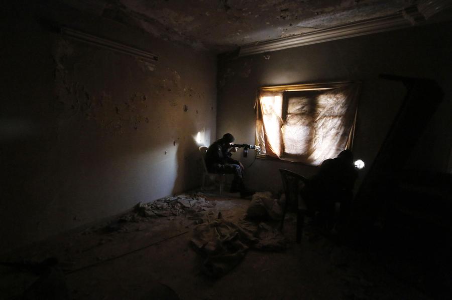 Read moreAl-Mujahideen army fighters, which operates under the Free Syrian Army, sit in shooting positions inside a damaged room during clashes with forces loyal to Syria's President Bashar al-Assad on the Zeno street front line in Aleppo on November 18, 2014. #