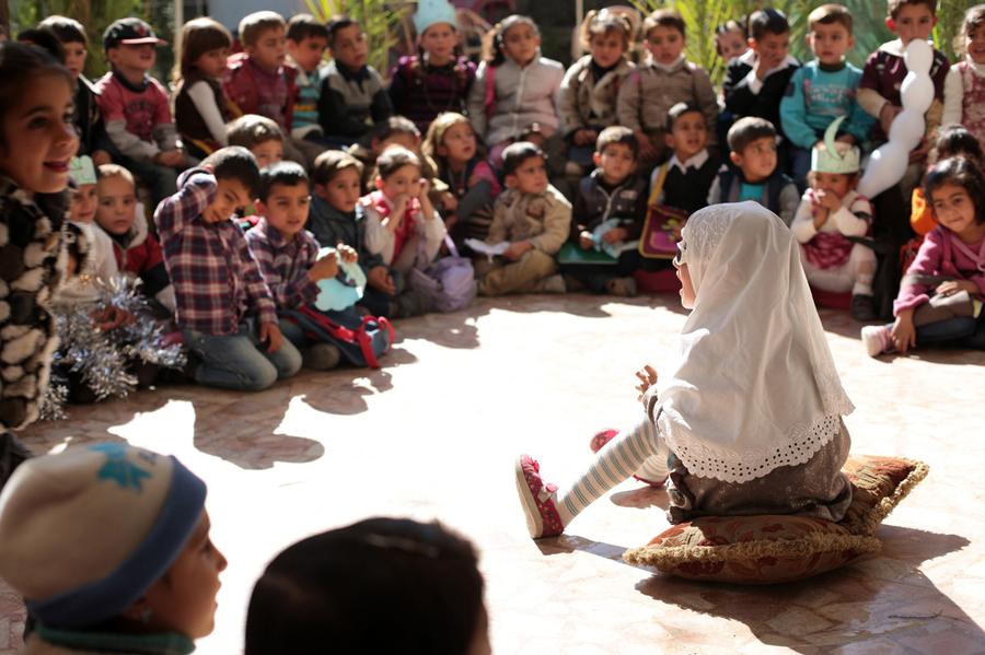 Read moreSyrian children attend a class at the Nabaa Al-Hayat center for education and psychological support for children in places undergoing crisis in the rebel-held Eastern Ghouta region on the outskirts of the capital, Damascus, on October 22, 2014. Overall, some 4,000 Syrian schools have been destroyed, damaged or used to house the internally displaced in three years of warfare, leaving the educational system on the verge of ruin, said a report in May by the Damascus-based Syrian Center for Policy Research in conjunction with the UN Development Program and the UN Palestinian refugee agency. #
