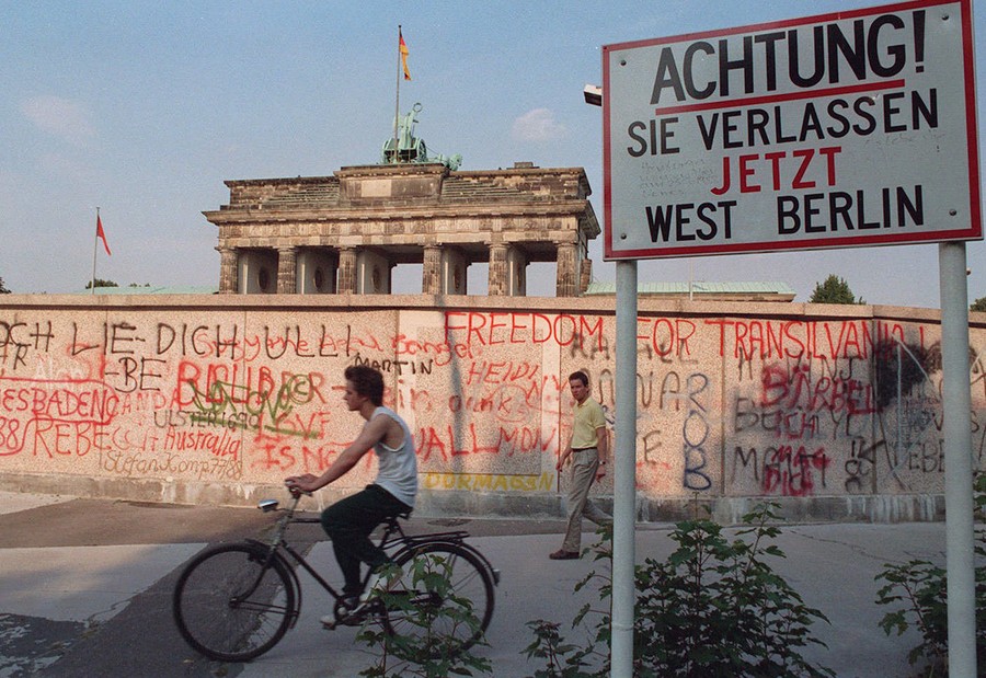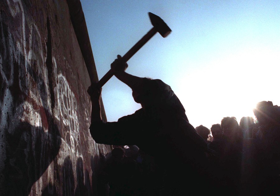 This weekend, Germany will observe the 25th anniversary of the fall of the Berlin Wall. The German Democratic Republic (East Germany) began erecting the barrier in 1961, building on existing checkpoints, and fortified it over nearly 30 years: The initial waist-high wooden gates gave way to massive concrete structures with buffer zones known as "death strips." The Berlin Wall was intended to halt the steady stream of defections from the Eastern Bloc; during its existence, only about 5,000 people managed to cross over, escaping into West Berlin. More than 100 are believed to have been killed in the attempt, most shot by East German border guards. In 1989, waves of protest in East Berlin and a flood of defections through neighboring Hungary and Czechoslovakia led the government to finally allow free passage across the border. West German citizens swarmed the wall, pulling parts of it down with hammers and machinery, an act that set the stage for Germany's reunification.