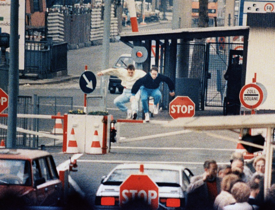 Read more(1 of 3) Two East Berliners jump across border barriers on the Eastern side of border checkpoint at Chaussee Street in Berlin in April of 1989. They were stopped by gun wielding East German border guards and arrested while trying to escape into West Berlin. People in the foreground, still in East Berlin, wait for permits to visit the West. #