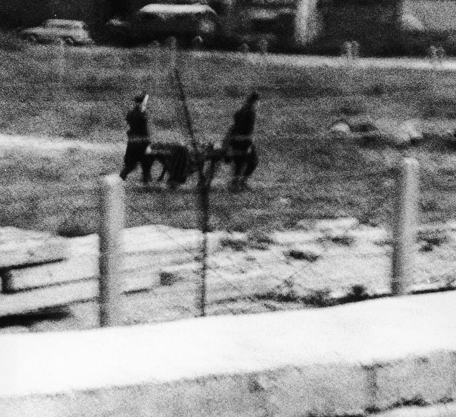 Read more(2 of 3) Two East Berlin refugees are taken away by border guards after a thwarted escape attempt at Berlin border crossing Chausseestreet, in this April 1989 picture. #