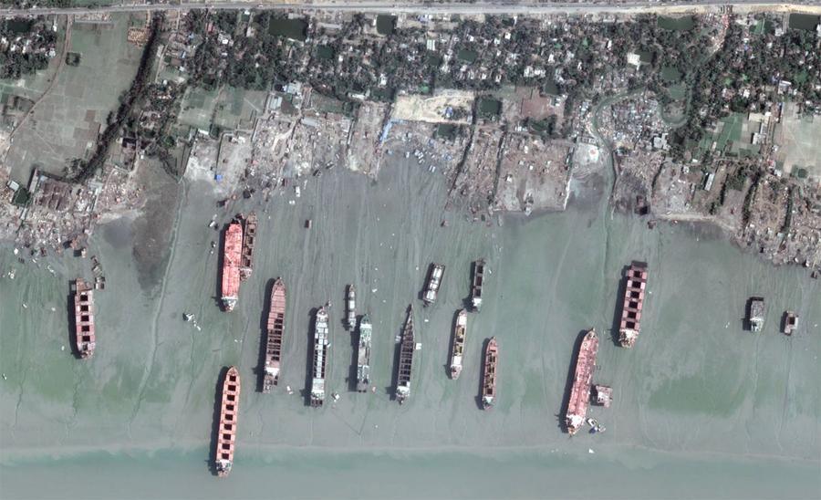Modern steel-hulled ships are built to last for several decades at sea before repair becomes uneconomical. After their useful life is over, more than 90 percent of the world's ocean-going container ships end up on the shores of India, Pakistan, Indonesia, or Bangladesh, where labor is cheap, demand for steel is high, and environmental regulations are lax. The ships are driven right up onto shoreline lots set aside for ship breaking, then attacked by hammer and blowtorch until all usable material has been stripped away to be sold or recycled. The work is extremely difficult, and low-paid workers face significant risks from the dangerous conditions and exposure to materials like asbestos and heavy metals. Environmental groups have raised alarms for years over the continued release of toxins into the environment from these shipyards. Gathered here are images from these yards taken over the past several years.