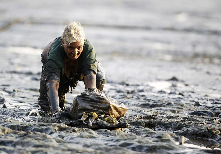 Read moreKurniah collects rust from a beach at a ship demolition site, near Tanjung Priok port in Jakarta, Indonesia, on April 16, 2010. Kurniah said she can earn approximately $2 after collecting about 100 kg (220 lbs) of rust a day. The rust is sold to a middleman who will sell it to a factory that will recycle it. #