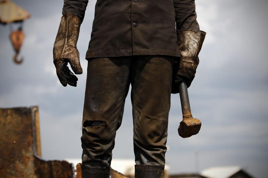 Read moreA shipyard worker is enveloped in fumes coming off a separating wall he is cutting through with his blowtorch inside the hull of a ship being dismantled in one of the 127 ship-breaking plots in Gaddani, some 40Kms west of Karachi, Pakistan, on July 9, 2012. Gaddani's ship-breaking yards employ some 10,000 workers including welders, cleaners, crane operators and worker supervisors. The yards are one of the largest ship-breaking operations in the world rivaling in size those located in India and Bangladesh. It takes 50 workers about three months to break down a midsize average transport sea vessel of about 40,000 tonnes. The multimillion-dollar ship-breaking industry contributes significantly to the national supply of steel to Pakistani industries. For a six-day working week of hard and often dangerous work handling asbestos, heavy metals and PCBs, employees get paid about 300 USD a month of which half is spent on food and rent for run-down rickety shacks near the yards, a labor representative told AFP. #