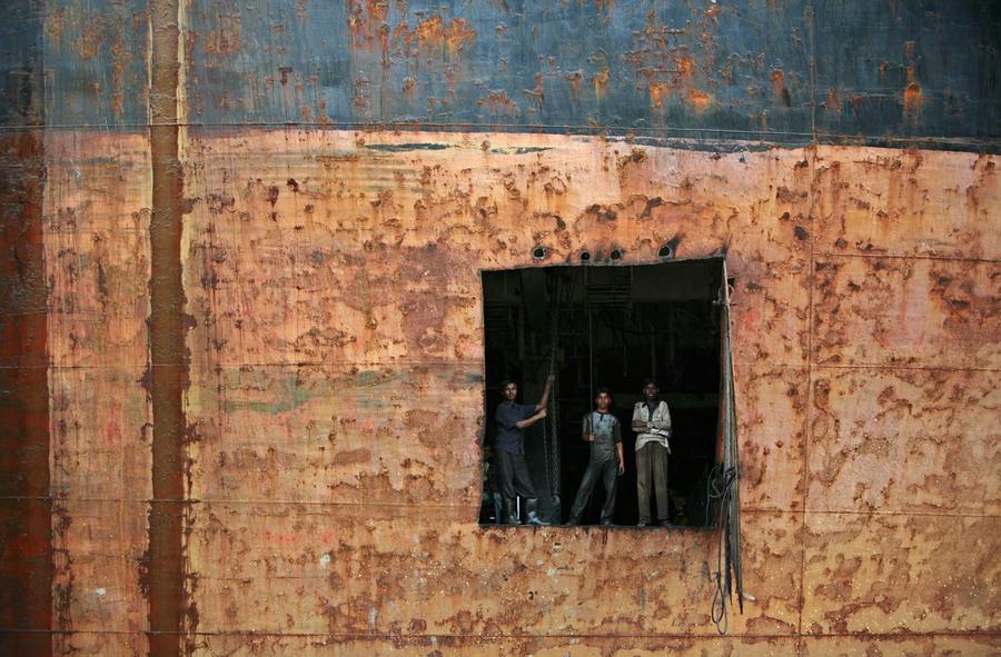 Read moreWorkers are seen through a cut part of a ship at a ship breaking yard in Chittagong, Bangladesh, on August 19, 2009. Bangladesh is dependent on ship breaking for its domestic steel requirements. #