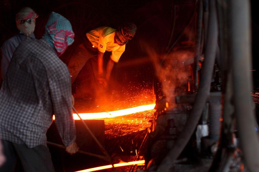 Read moreWorkers at a steel factory make steel rods out of cargo ship scrap on July 20, 2008 in Dhaka, Bangladesh. While the price of scrap metals has risen globally recently, workers at scrap factories in Bangladesh make an average under fifty cents and hour. #
