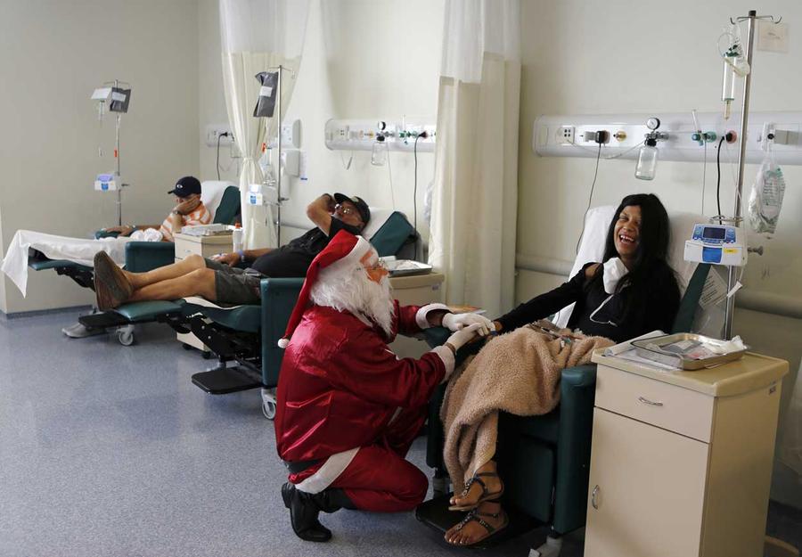 Read moreGuatemalan firefighter Hector Chacon, wearing a Santa Claus outfit, rappels down the Belize bridge to give toys to children living under the bridge, in Guatemala City, on December 21, 2014. #