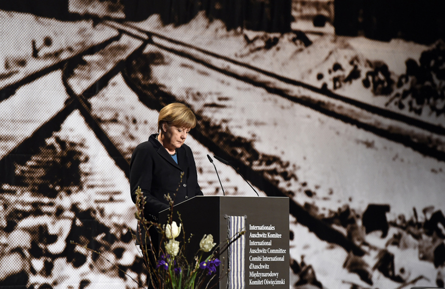 Read moreGerman Chancellor Angela Merkel stands in front of an historic picture of the Auschwitz concentration camp as she gives a speech during the International Auschwitz Committees remembrance ceremony to mark the 70th anniversary of the liberation of the Nazi death camp on January 26, 2015 in Berlin. The International Auschwitz Committee (IAC) was founded by survivors of the Auschwitz concentration camp aiming to let the world know what happened in the concentration and extermination camp Auschwitz-Birkenau and to look after the interests of the survivors. #