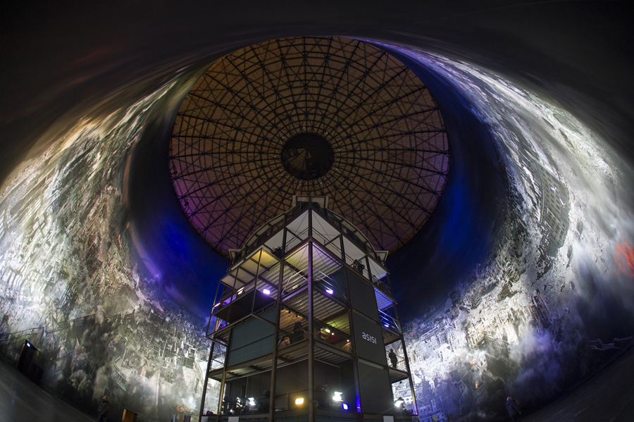 Read moreVisitors stand on the viewing platform of the new 360-degree panorama 'Dresden 1945—Tragedy and Hope of a European City' by Berlin-based artist Yadegar Asisi in the Asisi Panometer in Dresden, Germany, on January 28, 2015. The panorama, which is over 30m-high and has a 100m circumference, shows the city of Dresden after the bombings in February 1945. #