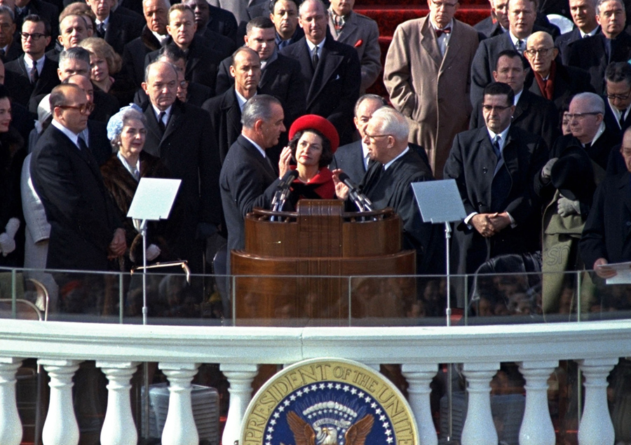 Read moreLyndon Johnson takes the oath of office during his second inauguration ceremony in front of the Capitol Building in Washington, D.C., on January 20, 1965. Administering the oath is Chief Justice Earl Warren, right. Holding the Bible at center is Lady Bird Johnson, beginning a new tradition. #