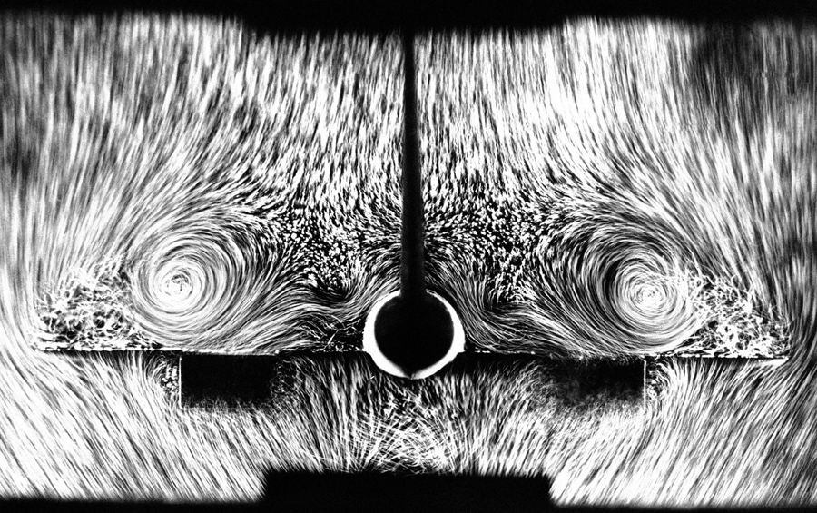 Read moreThis is the wind tunnel of the French National Institute for aerospace research in France, on July 16, 1965. It shows a scale model of the Franco-British jet transport plane Concorde, going through tests in heavy wind pressure during landing phase. The tourbillions are photographed at the trailing wings. The fuselage (white circle) is illuminated, thus allowing the picture to be taken. #