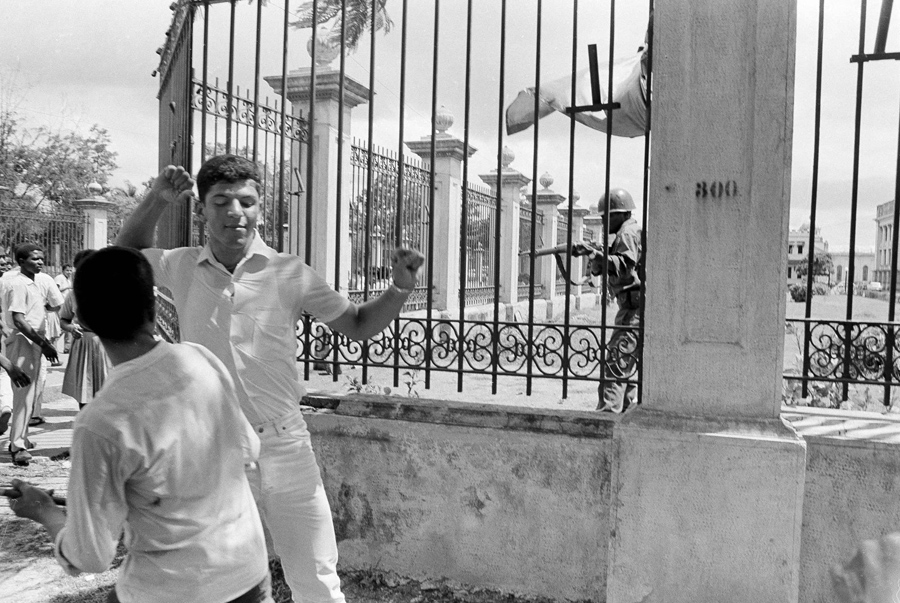 Read moreA Dominican army guard at the National Palace is photographed the instant he shoots and kills a high school student (arms raised) protesting U.S. Army presence in Santo Domingo, Dominican Republic, on September 27, 1965. In April of 1965, the United States occupied the Dominican Republic during the Dominican Civil War, holding it for more than a year. #
