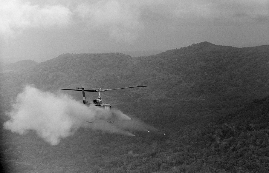 Read moreHovering U.S. Army helicopters pour machine-gun fire into tree lines to cover the advance of Vietnamese ground troops in an attack on a Viet Cong camp 18 miles north of Tay Ninh, Vietnam, on March 29, 1965, northwest of Saigon near the Cambodian border. #