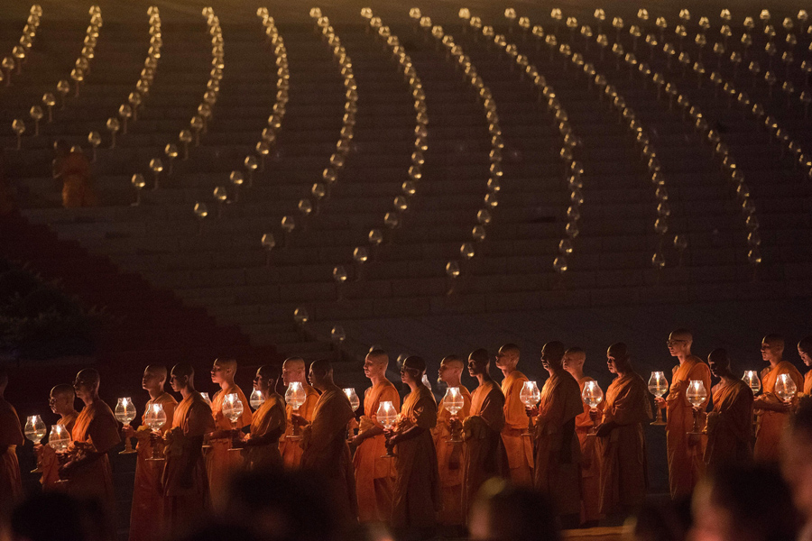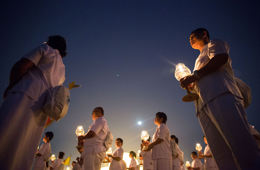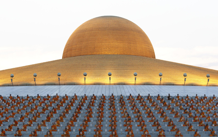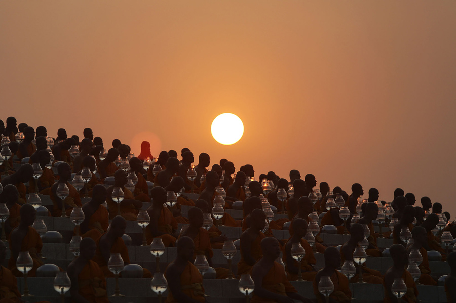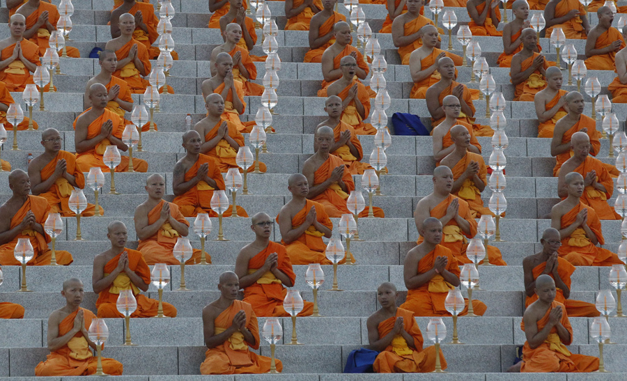 Read moreThai Buddhist monks pray and gather at Wat Dhammakaya in Pathum Thani province, north of Bangkok, to participate in Makha Bucha Day ceremonies on March 4, 2015. #