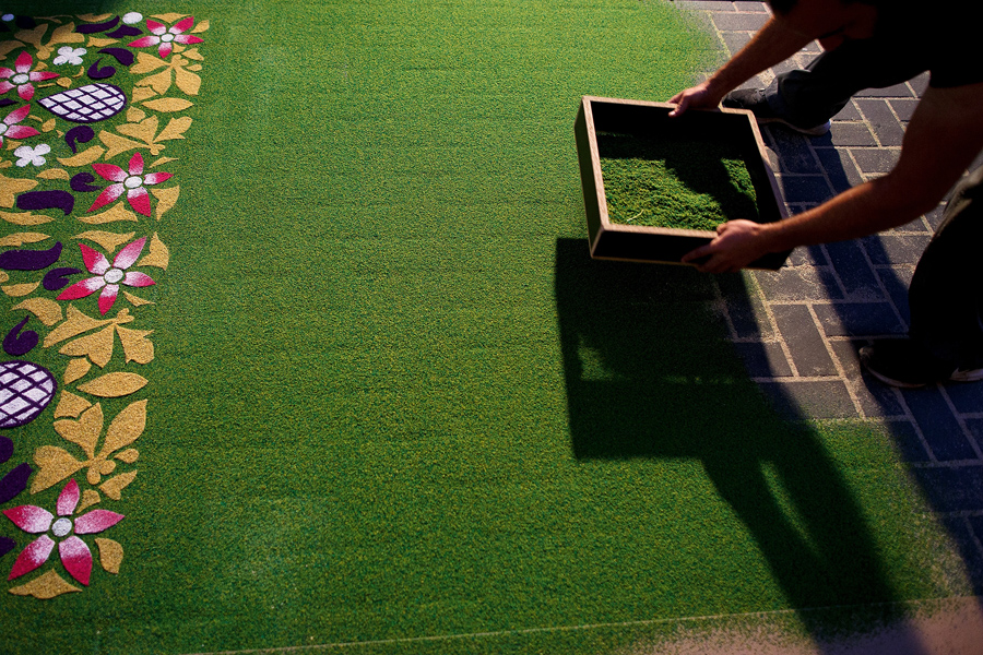 Read morePeople work on sawdust carpets (Alfombras de Serrin) in the early hours along the streets during the Corpus Christi feast on June 7, 2015, in Elche de la Sierra, near Albacete, Spain. The festival, started in 1964, was inspired by carpets of flowers from Catalonia. The sawdust carpets last until the Corpus Christi procession walks through them. #