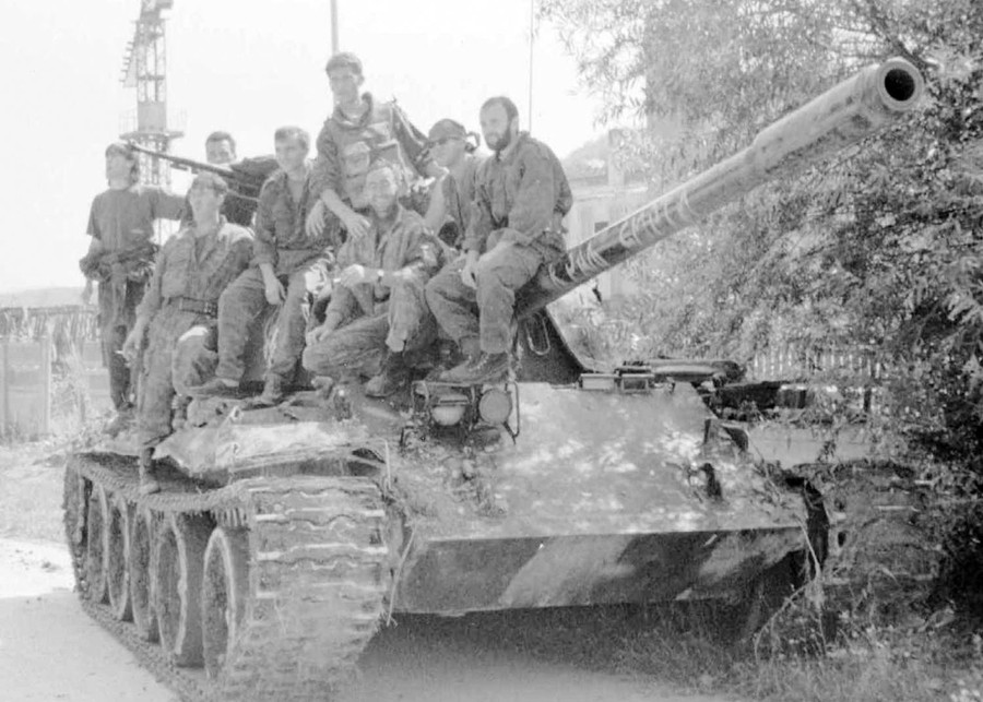 Read moreA Bosnian Serb tank crew rests after entering the Srebrenica enclave in eastern Bosnia on July 12, 1995. Over 20,000 refugees fled to the nearby U.N. base of Potocari after Srebrenica fell to the Bosnian Serb army. #