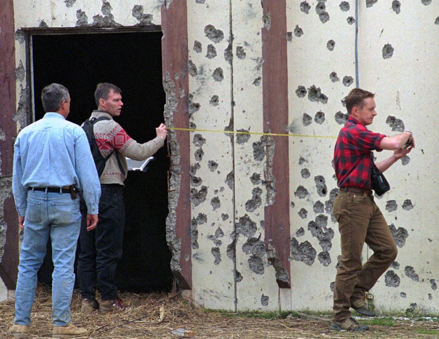 Read moreInternational war crimes investigators take measurements on a warehouse in Kravica (Serb-held territory) on April 12, 1996, where Muslims who were trying to escape the Srebrenica and Zepa enclaves were brought for execution by the Bosnian Serbs. #