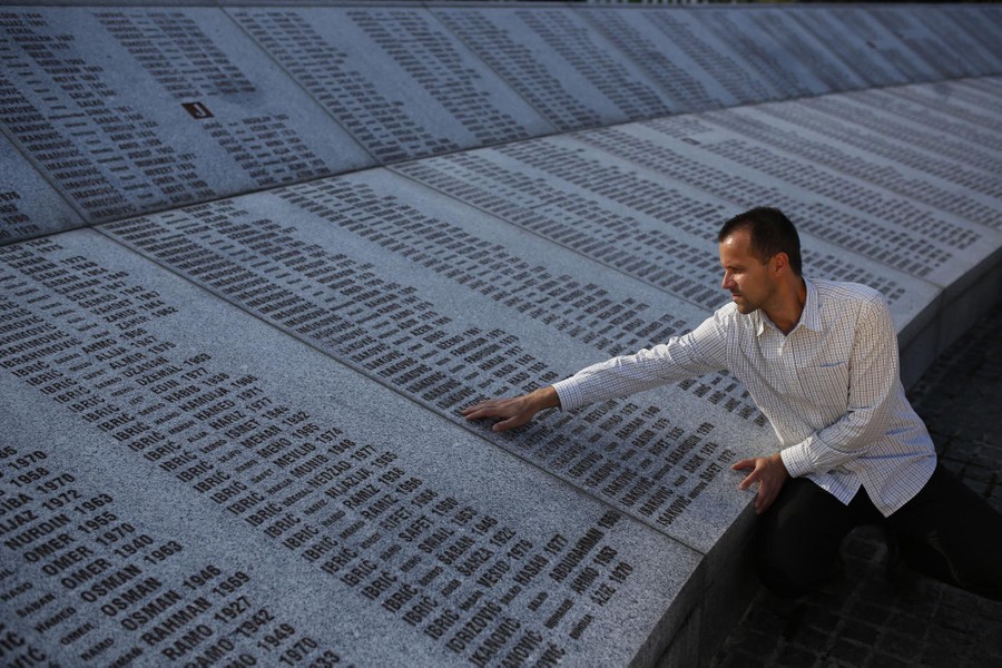 Read moreSrebrenica massacre survivor Nedzad Avdic, 37, touches the engraved names of those killed in a massacre and buried at the Memorial Center in the Srebrenica suburb of Potocari on June 27, 2015. He was 17 when he joined a group of men who tried to flee through the woods. His group was hunted down by Serb soldiers and brought to a school for execution. #