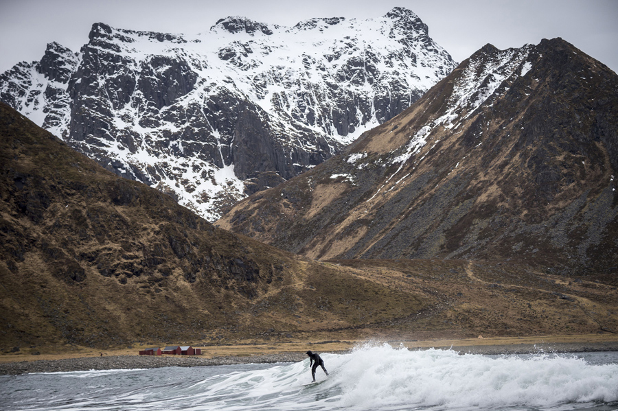 Read moreZ asked for “Something cold and Nordic.” Here, a Swedish tourist surfs in Unstad beach in the Lofoten Islands, within the Arctic Circle in Norway, on April 17, 2015. #
