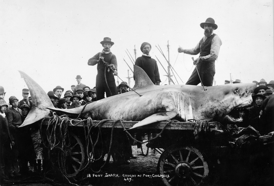 Read moreAn anonymous one-word request: “Sharks!”. I found this historic photo from around the year 1900 of an 18-foot shark caught in Port Chalmers, New Zealand. #