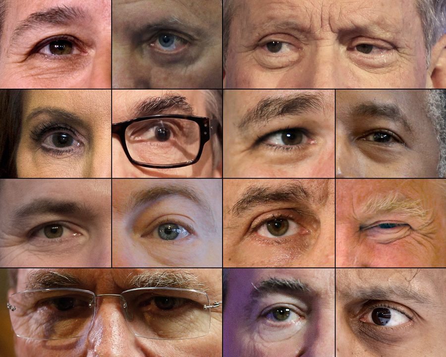 Read moreB requested “closeups of the GOP Presidential candidates”. A difficult task,considering how many there are currently. Here, a collage of the eyes of the 14 declared Republican presidential candidates for 2016. Left-to-right, 1st row: Rick Santorum, Lindsey Graham, George Pataki, 2nd row:Carly Fiorina, Rick Perry, Ted Cruz, Ben Carson, 3rd row: Marco Rubio, Rand Paul, Chris Christie, Donald Trump, 4th row: Jeb Bush, Mike Huckabee, and Bobby Jindal. #