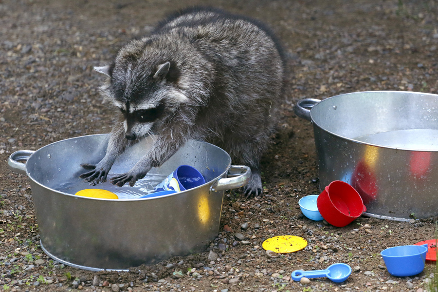 Read moreJ asked to see a playful raccoon. Here, Masha, a female raccoon, plays with plastic dishes in a pot filled with water, placed by zoo employees, inside an enclosure at the Royev Ruchey zoo in Krasnoyarsk, Russia, on June 7, 2015. #