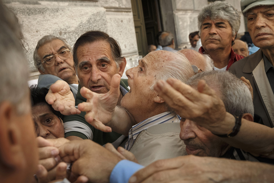 Read moreAn anonymous request came in to see images from “Greece's crisis.” Here, pensioners try to get a number to enter inside a bank in Athens on July 1, 2015. About 1,000 bank branches around the country were ordered by the government to reopen Wednesday to help desperate pensioners without ATM cards cash up to 120 euros ($134) from their retirement checks. Eurozone finance ministers were set to weigh Greece's latest proposal for aid Wednesday. #