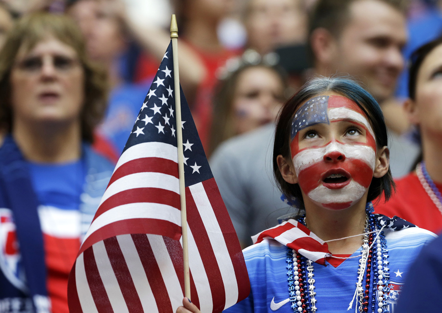 Read moreA fan sings the U.S. national anthem before the start of the FIFA Women's World Cup soccer championship between the United States and Japan in Vancouver on July 5, 2015. #