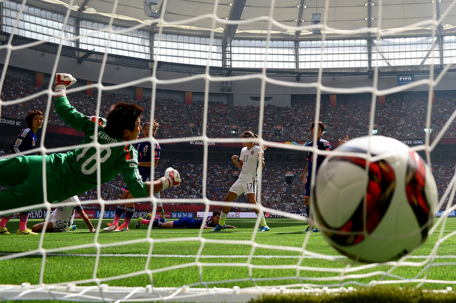 Read moreGoalkeeper Ayumi Kaihori of Japan is unable to save a shot by Carli Lloyd of the United States as Lloyd scores in the first half in the Women's World Cup final on July 5, 2015. #