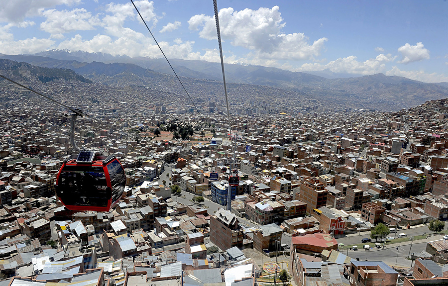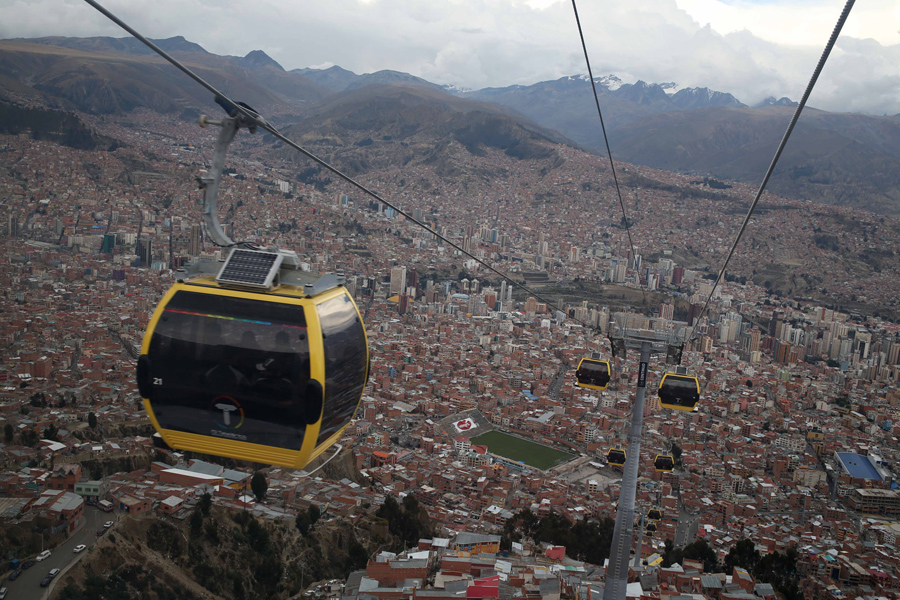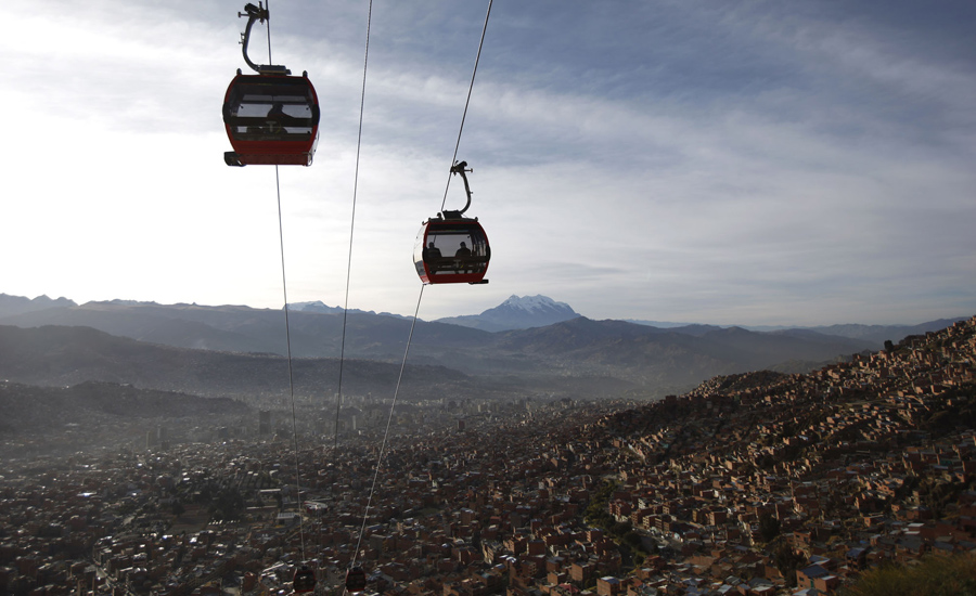 Read moreA cable car moves above La Paz on October 10, 2014. #