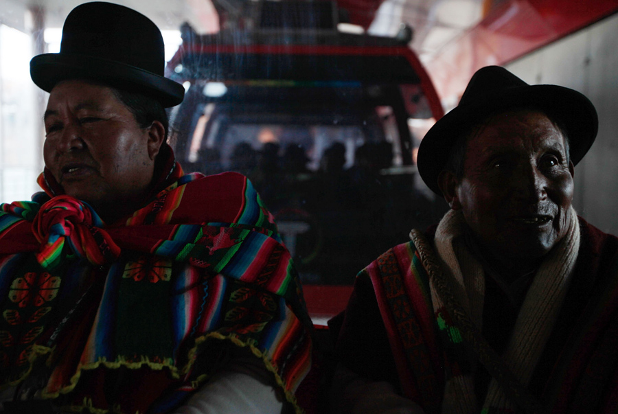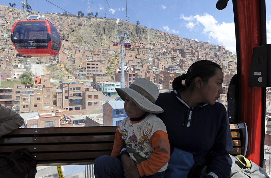 Read moreIn this June 2, 2014 photo, indigenous Aymara ride in a cable car that links La Paz with its neighbor El Alto. #