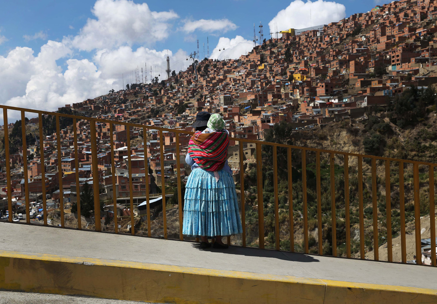 Read moreA woman looks at the city of La Paz from the Jacha Qhatu cable car station in El Alto on July 23, 2015. #