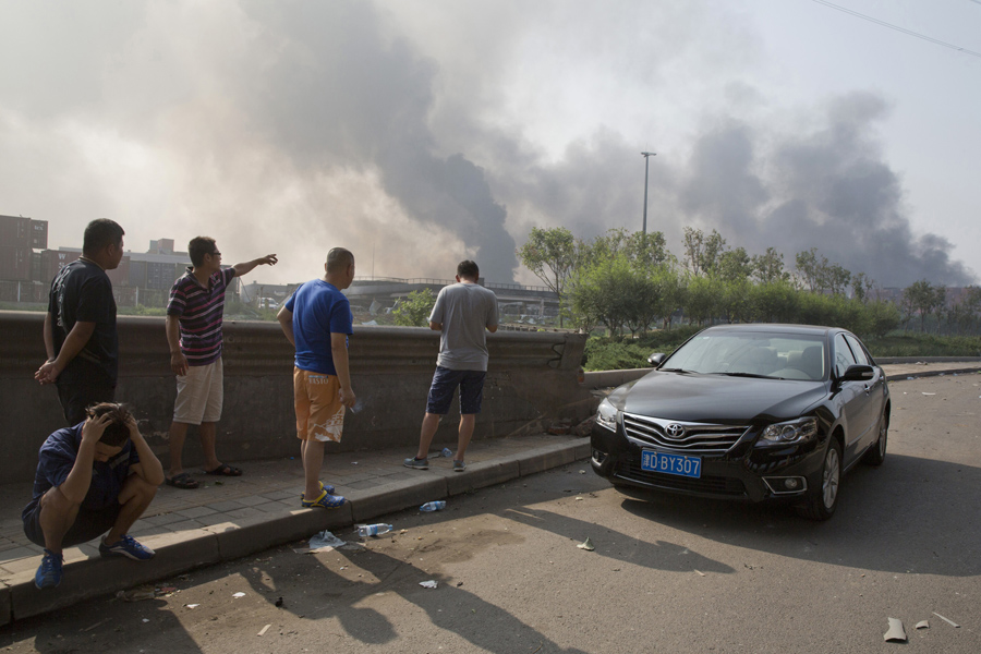 Read moreResidents gather near the explosion site at a port in Tianjin municipality on August 13, 2015. #
