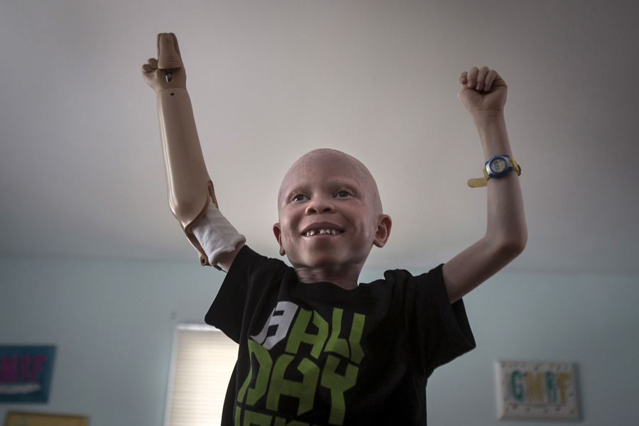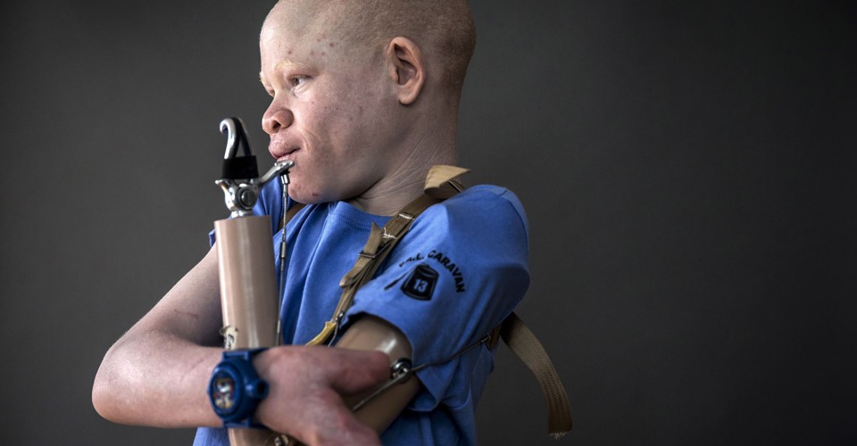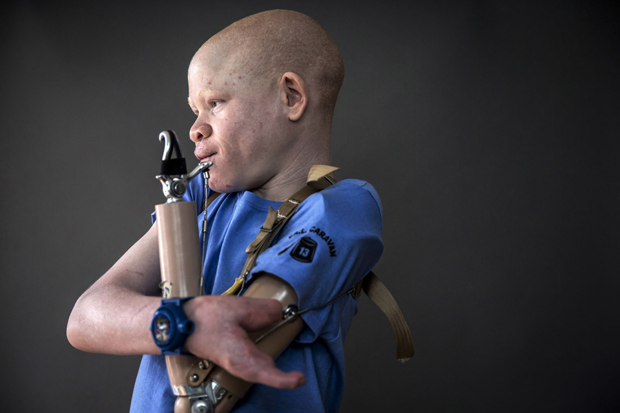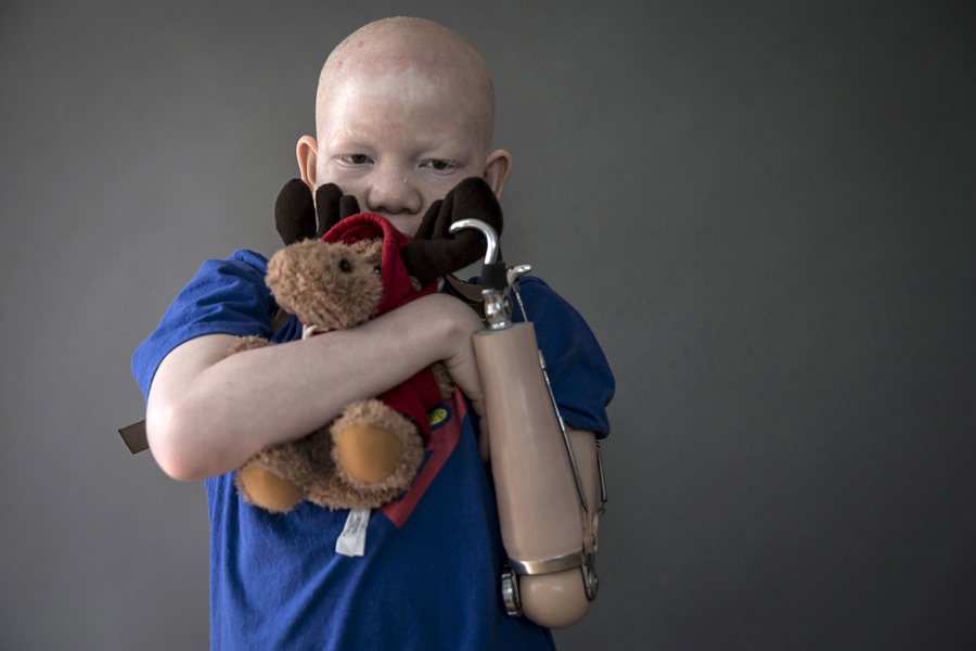 Read moreFive-year-old Baraka Cosmas from Tanzania poses for a portrait in New York on September 21, 2015. The children have been shielded as much as possible from harsh truths, spared news of other attacks and the disadvantages and discrimination that lie ahead, Montanti said. Baraka, for one, does not know his father is accused of involvement in his attack six months ago and is under arrest in Tanzania. #