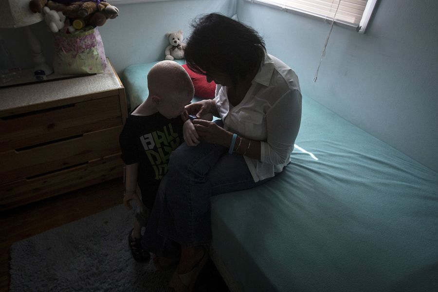 Children born with albinism in Tanzania live in constant danger of being attacked by people looking to profit from superstitious beliefs. About one in 20,000 people is born with albinism, lacking pigment in their hair, skin, and eyes. In Tanzania, according to reporting from the Thomson Reuters Foundation, albino body parts are highly valued in witchcraft and can fetch a high price: “Superstition leads many to believe albino children are ghosts who bring bad luck. Some believe the limbs are more potent if the victims scream during amputation, according to a 2013 United Nations report.” Reuters also notes, “The United Nations estimates about 75 albinos have been killed in the east African nation since 2000 and have voiced fears of rising attacks ahead of this year’s election, as politicians seek good luck charms from witch doctors." Reuters photographer Carlo Allegri recently documented the lives of several Tanzanian children receiving care in New York after being brutalized in their home country.
