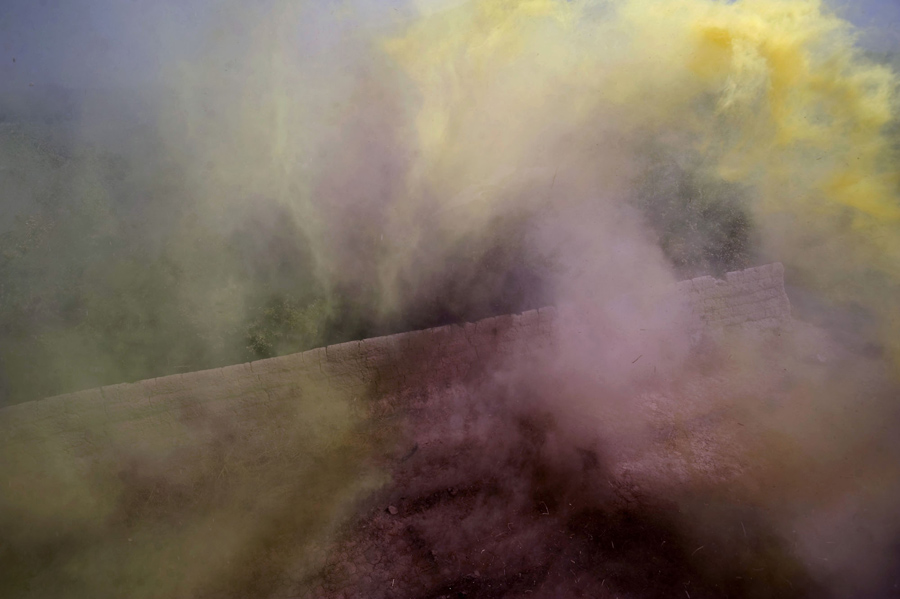 Read moreSeen through the window of a medevac helicopter, smoke blows on the landing zone as the helicopter arrives to pick up a U.S. soldier critically wounded by an IED somewhere near the village of Sangasar in Zhari District. #