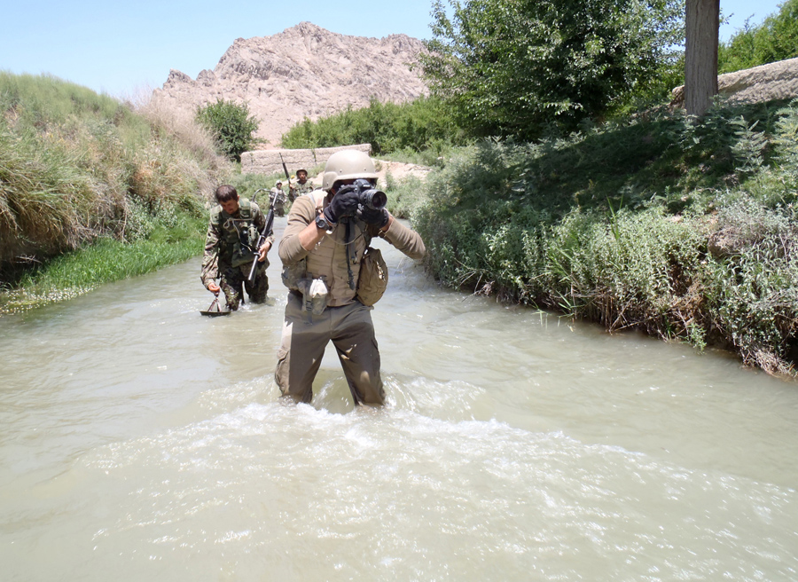 Read morePhotographer Louie Palu covering combat operations while on patrol with the U.S. 82nd Airborne and Afghan Army in Arghandab District, Kandahar, Afghanistan. Seen here walking in a river to avoid the numerous IEDs and land mines. #