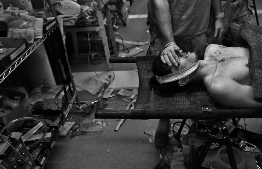 Read moreAn Afghan soldier wounded in a bombing during night raid is illuminated by a medevac helicopter’s blue cabin light as he is evacuated out of the Taliban stronghold of Zhari District. #