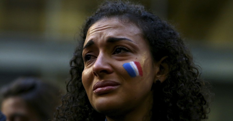Read moreA woman with a French flag painted in her face cries during a vigil for victims of the Paris terror attacks at Martin Place, on November 14, 2015 in Sydney, Australia. #
