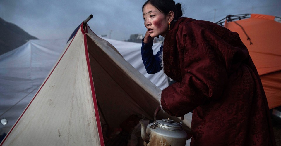 Read moreA Tibetan Buddhist nomad woman prepares tea at dusk following a chanting session as part of the annual Bliss Dharma Assembly at the Larung Wuming Buddhist Institute on October 31, 2015, in Sertar County, China. #
