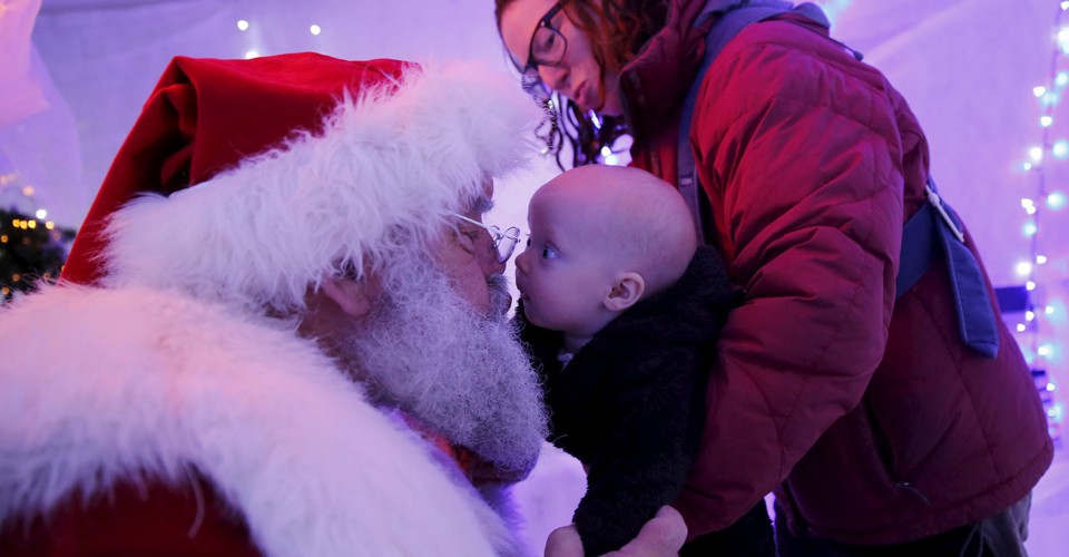 Read moreSix-month-old Cleo Matheson kisses actor John Field, dressed as Santa Claus, at a Christmas grotto at a dental practice in north London, Britain, on December 12, 2015. Field, 66, a former teacher turned actor, has taken on the role of Santa for the past 12 years. “I'm playing a part but it is one of the most truthful parts I can play,” he says. #