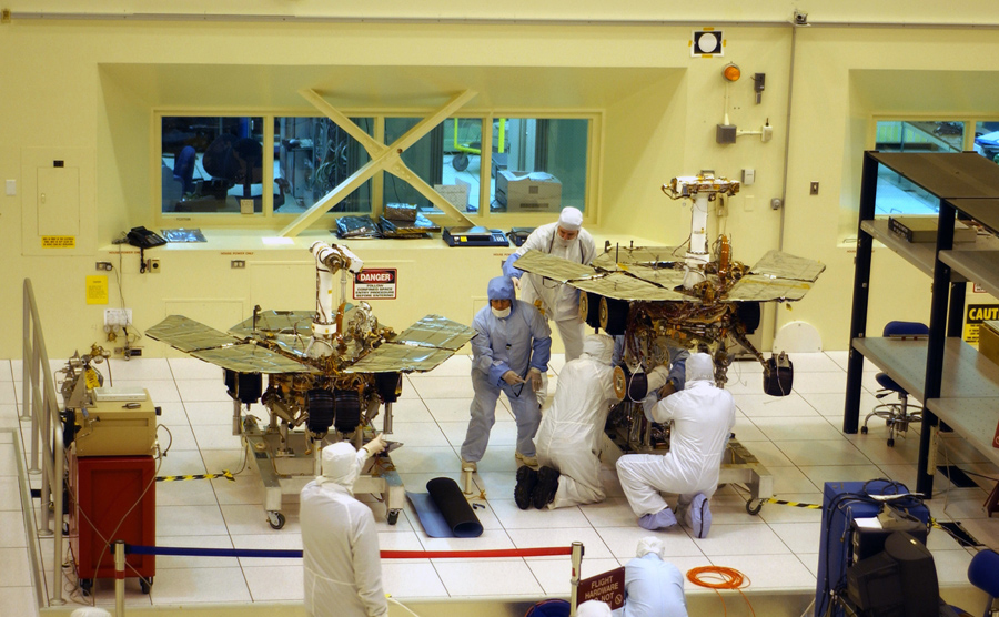 Read moreWorkers put final touches to the two new Mars exploration rovers at NASA's Jet Propulsion Laboratory, on February 10, 2003, in Pasadena, California. The identical robotic explorers will search for evidence of liquid water in two separate areas of the red planet. #