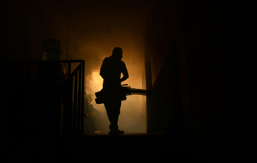 Read moreA Health Ministry employee fumigates a home against the Aedes aegypti mosquito to prevent the spread of the Zika virus, in Soyapango, 6 kilometers east of San Salvador, El Salvador, on January 27, 2016. #
