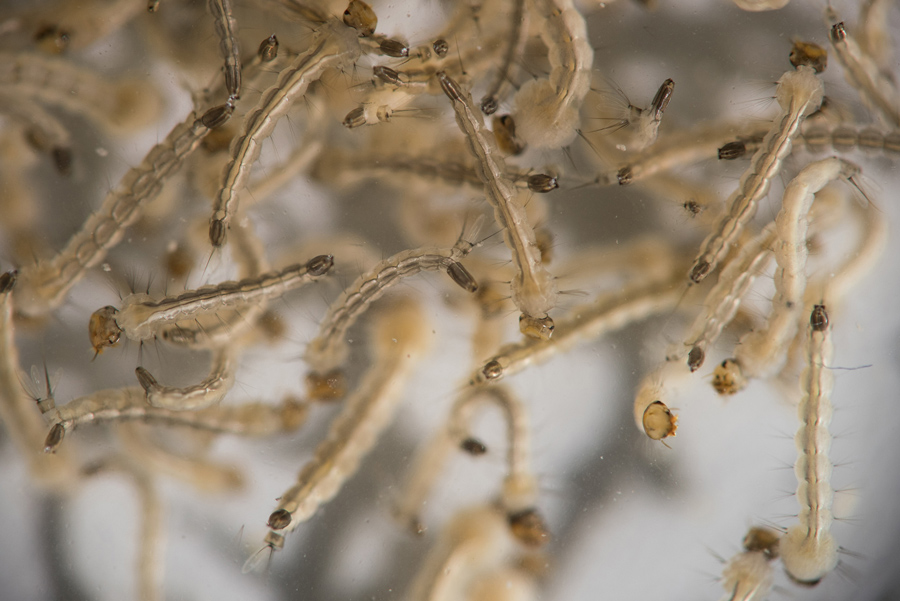 Read moreThe forearm of a public health technician, covered with sterile female Aedes aegypti mosquitoes after leaving a recipient to cultivate larvae, in a research area to prevent the spread of Zika virus and other mosquito-borne diseases, at the entomology department of the Ministry of Public Health, in Guatemala City, on January 26, 2016. #