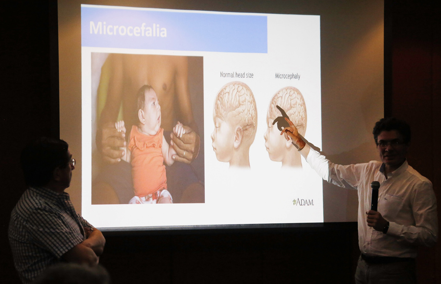 Read moreColombia's Health Minister Alejandro Gaviria, right, explains possible health complications associated with the Zika virus during an event to launch a nationwide prevention campaign in Ibague, Colombia, on January 26, 2016. Gaviria said the mosquito-borne Zika virus has already infected more than 16,000 people in Colombia and could hit more than half a million throughout the country. #